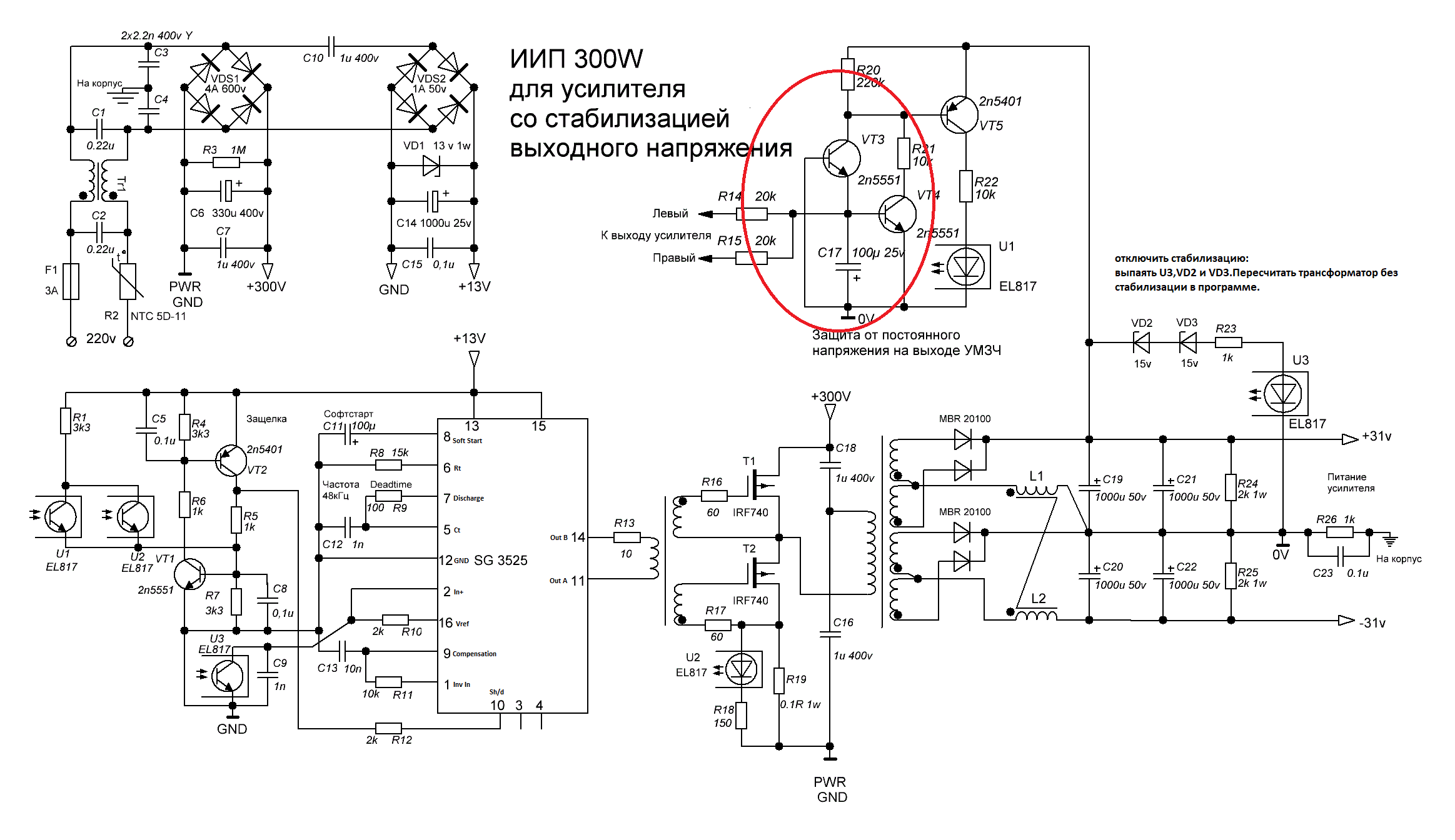 | Цитата digitalprojectspb (  ) помилка. Бази VT11, VT21 сидять на землі. А це, мабуть, так і треба. Ось в цій схемі захисту також база VT3 сидить на землі. Може це для того, щоб від мінусової напруги захист спрацьовував.