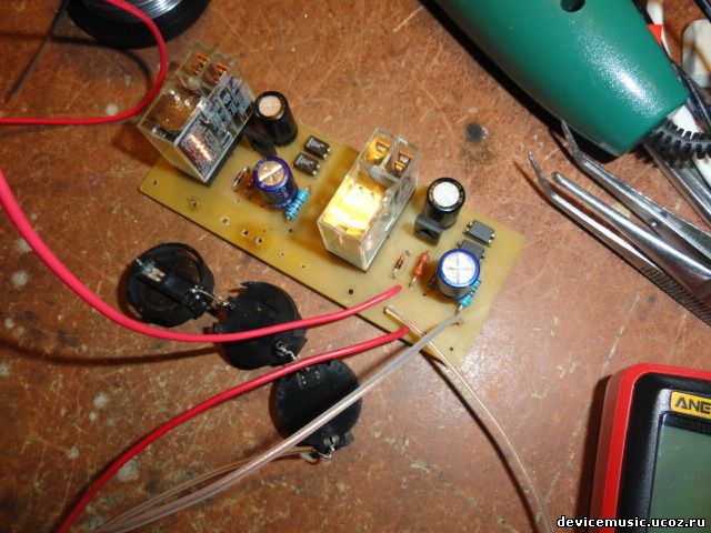 Цитата jpatay (  ) Выкладываю ЛЕЙку: Собрал вчера вашу схемку, работает,но выключается толькоот9 в (Три таблетки по 3 в). В одном канале Cosmo 1010 ,а в другом-РС123.Резисторы-5.1 к,13к, 47к. Реле на 12в.
