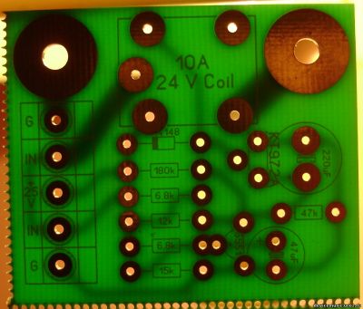 Добавлю. Сейчас ещё повозился со схемой.Поставил транзистор 2N5551 и всё заработало как надо. Питание 24 в, реле рэн-34, входной резистор 20 ком - отключается от 1,55 вольт. Буду разводить плату. Минимум деталей, что радует.